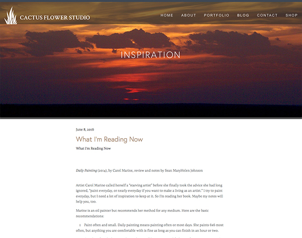 The Cactus Flower Studio website was designed by Desert Elements to showcase the artwork, photography and writings of Sean MaryHelen Johnson in an artistic, distinctive and easy to use layout. Artwork and Photography galleries are shown in a grid view with the functionality to expand and see larger versions. New work and blog postings are updated by the artist via content editor. This website works on all devices while maintaining the intended layout.