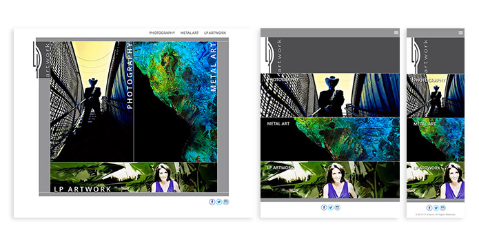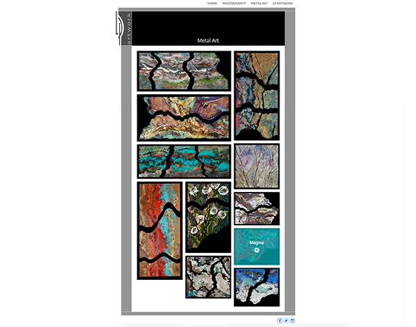 The LP Artwork website showcases the photography and metal art work of Lisa Pollard in a distinctive, artistic, and easy-to-use layout. Artwork and photography pieces are shown with multiple views for each piece. New work is added by the artist via a simple content editor tool and the website frontend automatically generates a visually compelling grid collage of the images. The site works on phones and tablets without losing its clean, artistic look and feel.