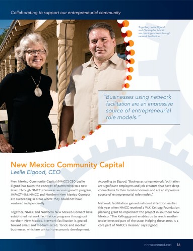 Northern New Mexico Connect was looking for a new, professional look that represented the diverse audience and broad clientele they showcase and finance. The logo was refreshed, and an overall branding was established. Among the deliverables were a 20-page Annual Report, invitations, roll-fold informational cards, trade show banners, posters to display for an annual event, as well as a power point presentation to show on screen during the event. Desert Elements worked with Connect for four years of strategic branding and overall graphic design.