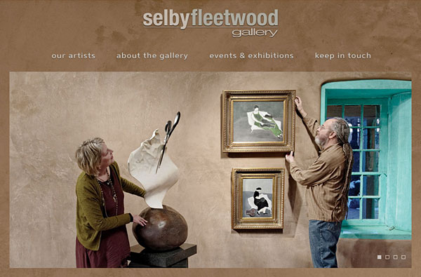The Selby Fleetwood Gallery website features information on and artwork by the artists represented by the gallery The art gallery website was designed by Desert Elements to coordinate with the physical structure and interior look and feel, which is an adobe on the famous Canyon Road in Santa Fe.  Website visitors can browse available and sold artwork and find out about upcoming events and exhibitions. The site features an online form to gather contact details and specific artist interests from potential clientele.