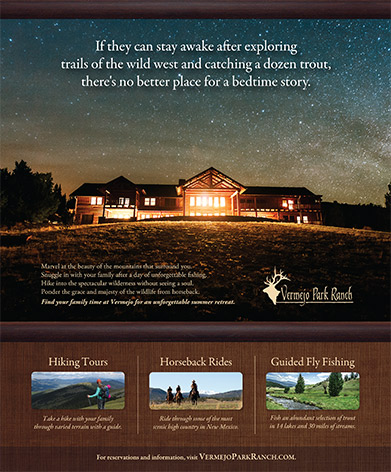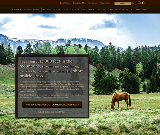Desert Elements created the custom designed website for Vermejo Park Ranch, an exclusive lodge and ranch destination in New Mexico owned by Ted Turner. The hospitality industry website features stunning photography commissioned for use on the website. The website offers online booking, the gift shop catalog of products, and full information on events at the ranch.